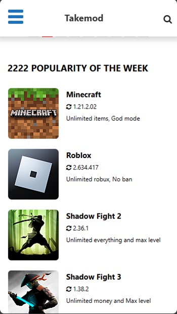 - Wide Range of Apps and Games: TAKEMOD offers a broad selection of popular apps and games. In addition to GTA, ROBLOX, and MINECRAFT, the platform regularly adds new titles, ensuring that users always have access to the latest customized versions.